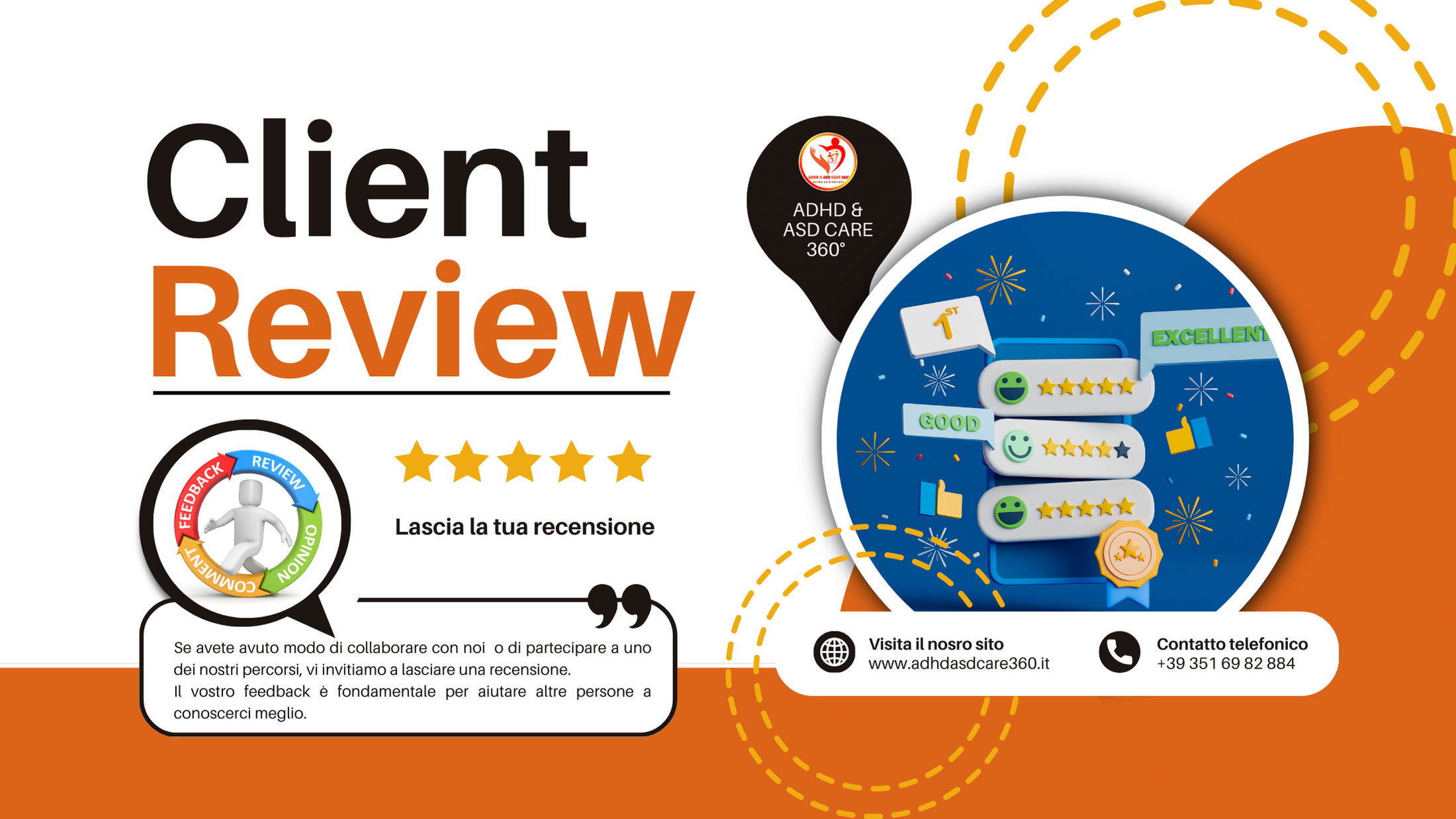 Se hai usufruito dei nostri servizi o hai partecipato alle nostre attività, ti invitiamo a lasciare una recensione. Il tuo feedback è fondamentale per migliorare continuamente il nostro lavoro e per dare voce a chi, come noi, crede in un supporto integrato e personalizzato.